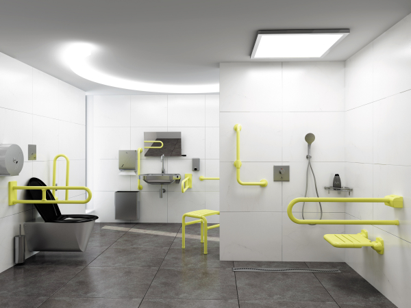 Tous les produits ne peuvent pas être utilisés sans contact. C’est le cas des barres d’appui destinées aux personnes à mobilité réduite. Ces produits doivent résister à des charges élevées et l’utilisateur les saisit fermement et entièrement. La question se pose donc : comment garantir un niveau d’hygiène élevé pour de tels produits dans un environnement à risque, comme par exemple les hôpitaux ? Et nous sommes heureux d’y apporter une réponse.