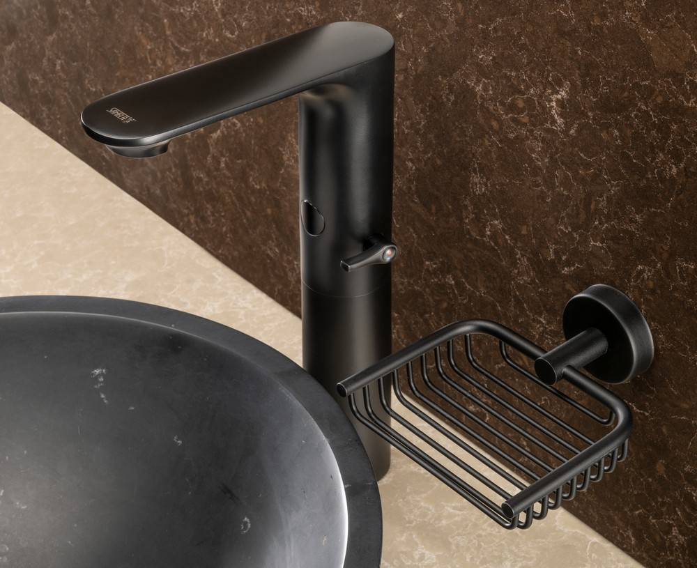 Le noir n’est pas seulement synonyme de style et d’élégance, il est aussi pratique à entretenir. Grâce au capteur intégré au robinet, le gaspillage inutile d’eau est évité. Dès que le capteur détecte la présence d’une main, l’eau commence à couler, puis s’arrête immédiatement après le lavage. Les robinets sont également équipés d’un mousseur économiseur d’eau.