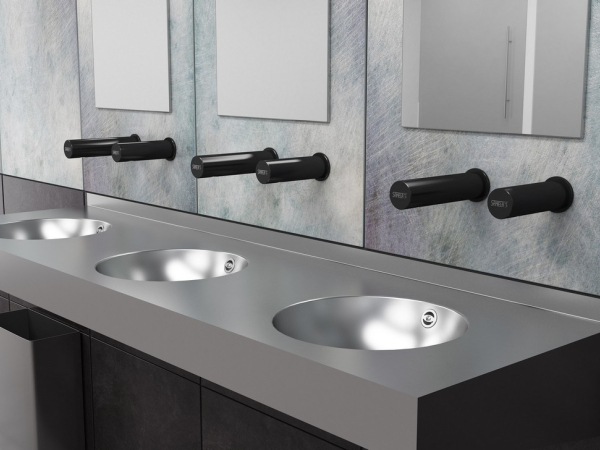 Automatic washbasin taps with soap dispenser is an ideal pair for non-contact hygiene.