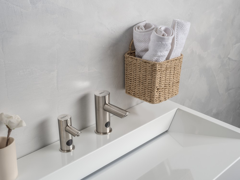 Sanela n’oublie pas la durabilité. Les robinets sont équipés d’un aérateur économique limitant le débit à 6 litres par minute, ce qui permet d’économiser l’eau sans nuire au confort d’utilisation. Les distributeurs, quant à eux, minimisent la consommation de savon, assurant ainsi une utilisation plus efficace du produit nettoyant.