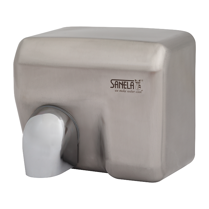 SLO 02E - Réf. 79024 - sèche-mains mécanique avec capot en acier inoxydable brossé et bouton-poussoir sur la face avant, sèche-mains automatique avec capot en acier inoxydable brossé