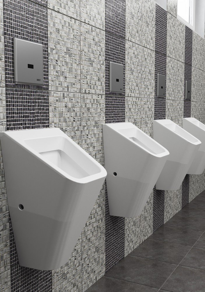 - le système réagit à la présence de l'utilisateur devant l'urinoir à une distance maximale de 0,7 m, le temps de présence minimum dans la zone active est de 7,5 s