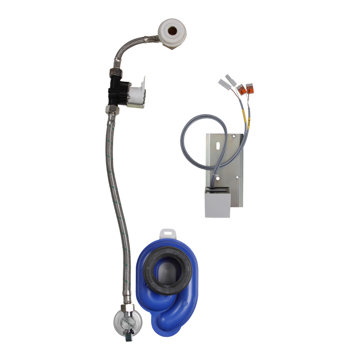 SLP 35S - Supply No. 11351 - radar flushing unit on the mounting rail, electromagnetic valve, connecting hoses, angle valve with filter and check valve, inlet fitting with a rubber sealing, siphon, drill template
