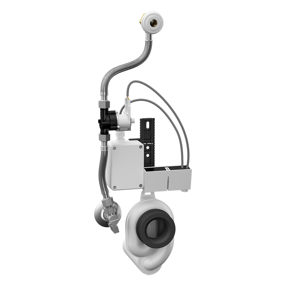 - l'ensemble de l'unité de chasse est placé derrière l'urinoir