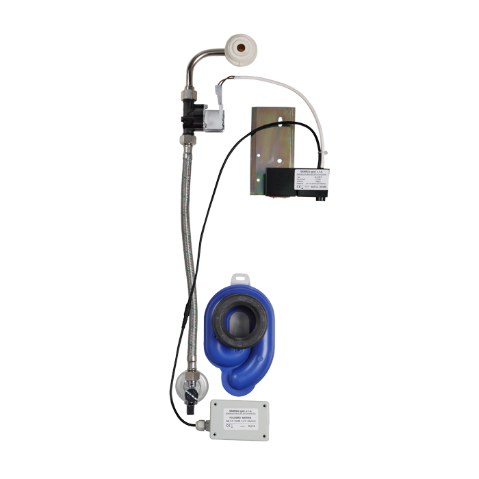 SLP 99Z - Supply No. 21994 - radar flushing unit including Bluetooth module on the mounting rail, electromagnetic valve, connecting hoses, angle valve, inlet fitting with a rubber sealing, siphon, power supply