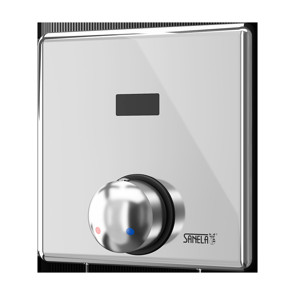 SLS 02 - Réf. 02020 - capot en acier inoxydable avec électronique, boîtier de montage en acier inoxydable avec raccord à vis en laiton, électrovanne, vanne à bille et mitigeur