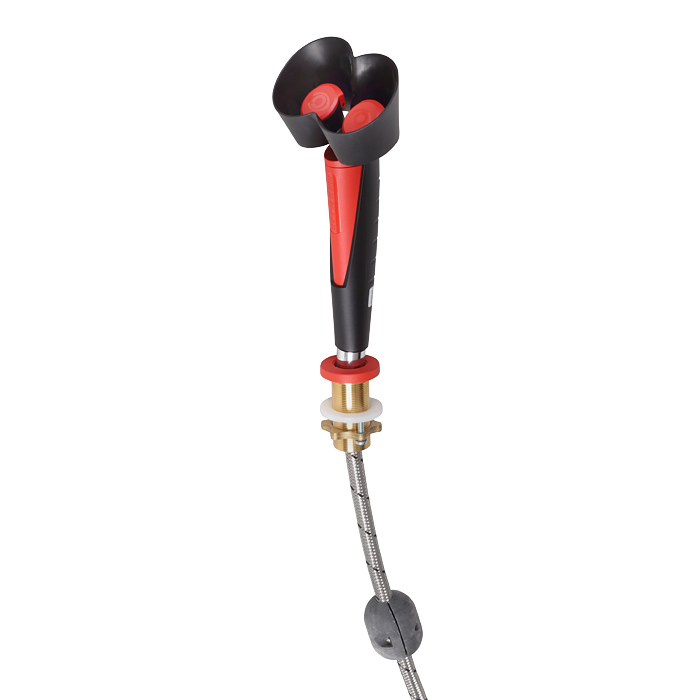 Douche oculaire manuelle avec deux têtes de pulvérisation, angle d'inclinaison 45°, avec passe-câble pour bureau