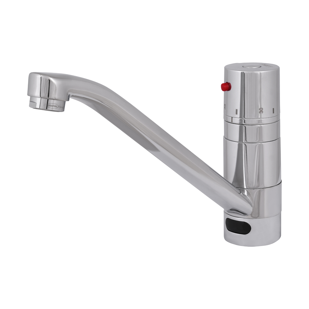 Washbasin and sink thermostatic mixer with elongated spout, 6 V