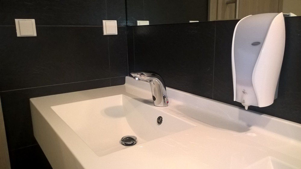 - l'eau s'arrête de couler après le retrait des mains de la zone active du capteur, après un délai réglable (peut être réglé entre 0,25 et 7,75 s)