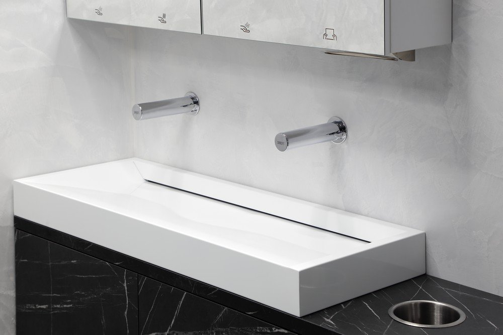 - l'eau s'arrête de couler après le retrait des mains de la zone active du capteur, après un délai réglable (peut être réglé entre 0,25 et 7,75 s)