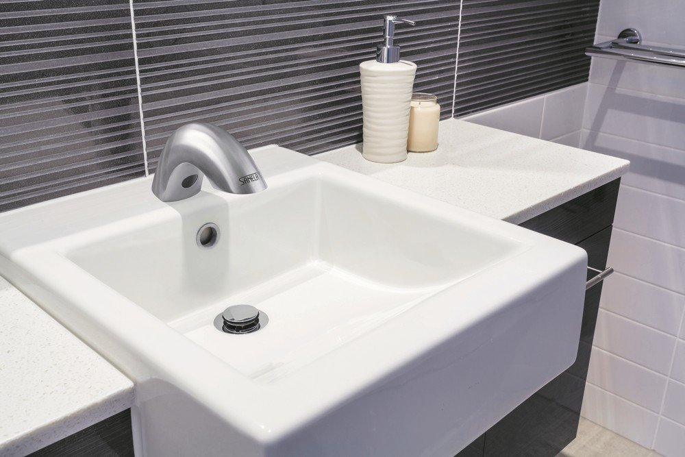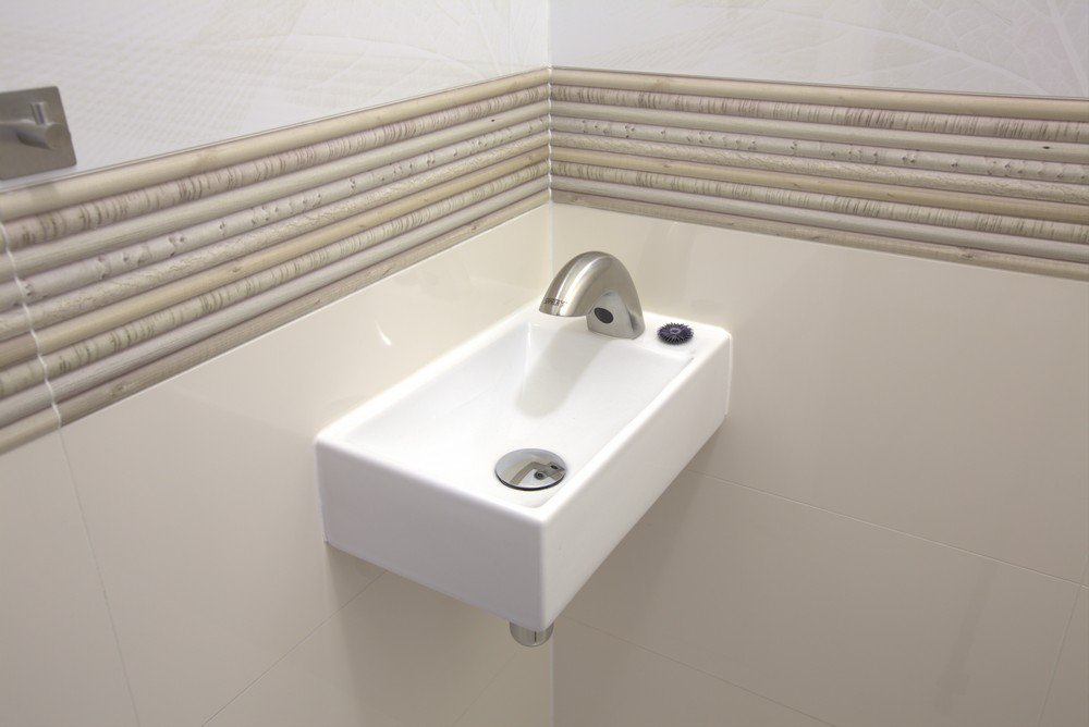 - l'eau cesse de couler après le retrait des mains de la zone active du capteur après un délai réglable (peut être réglé entre 0,25 et 7,75 s)