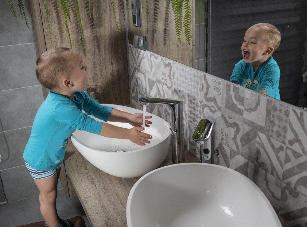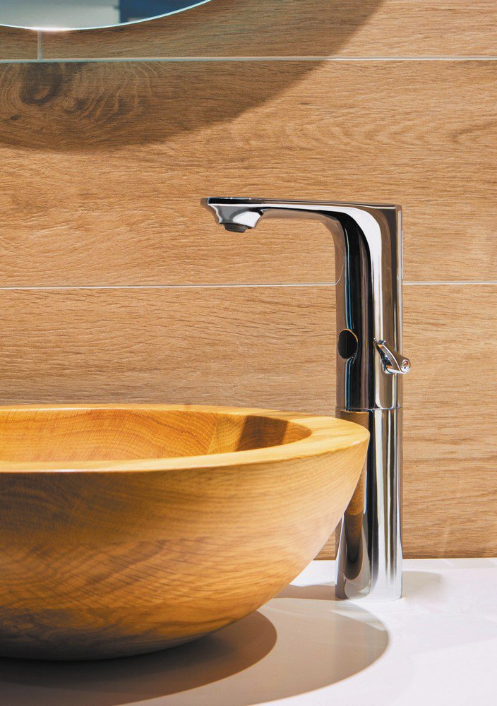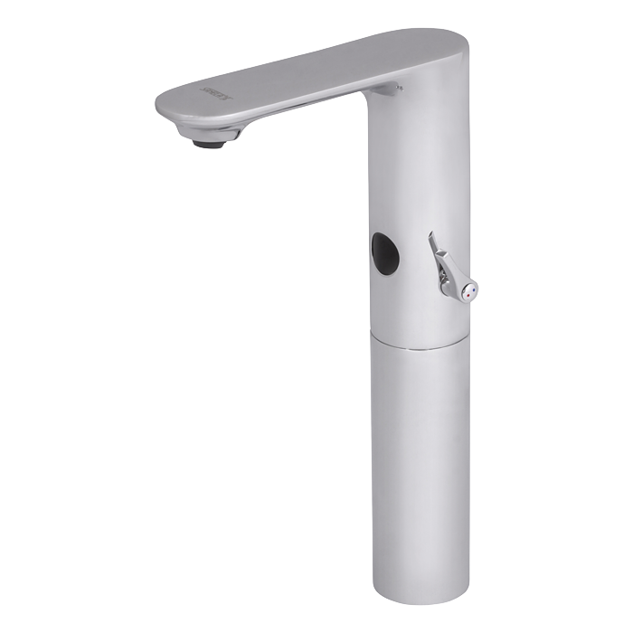 - l'eau s'arrête de couler après le retrait des mains de la zone active du capteur après un délai réglable (peut être réglé entre 0,25 et 7,75 s)