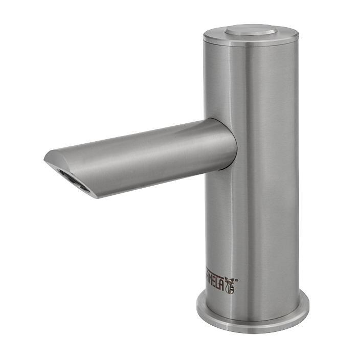 Mitigeur de lavabo en acier inoxydable à commande piézo, température régulée par robinets d'angle, bec plus long, 6 V