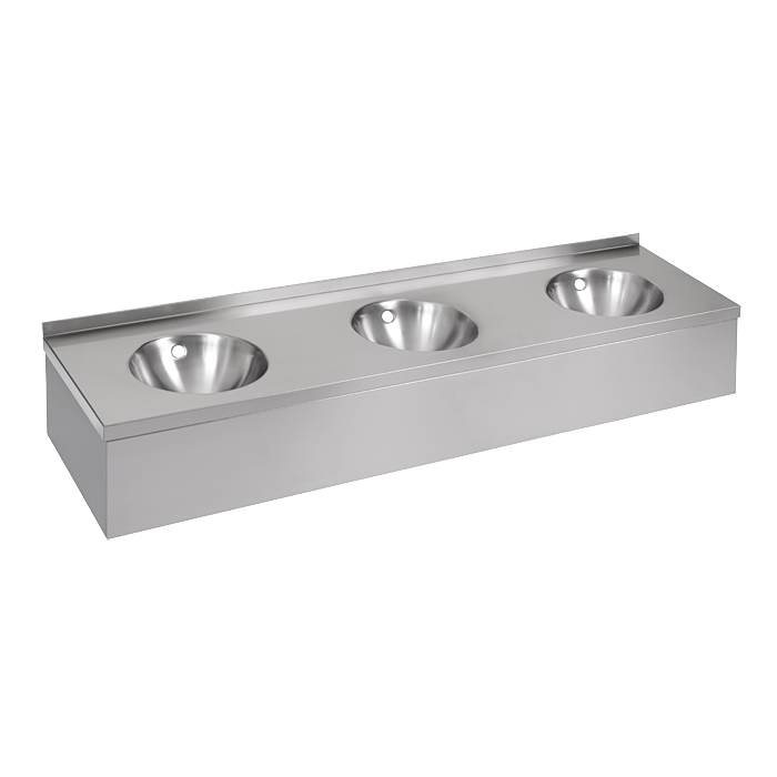 - SLUN 20P - lavabo triple mural en acier inoxydable avec tablier et ensemble de trop-plein, longueur 1800 mm