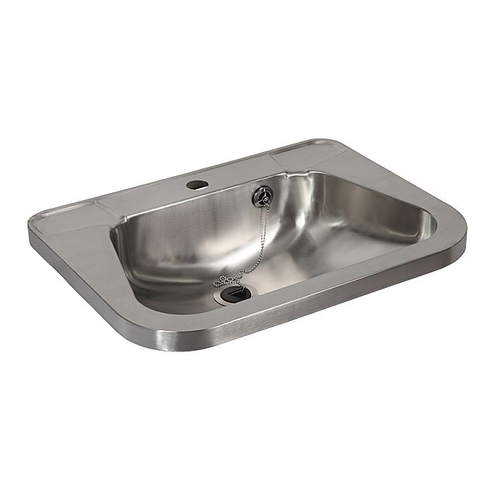 SLUN 26 - Réf. 93260 - lavabo en acier inoxydable, console (2 pcs.), ensemble trop-plein avec chaîne et bouchon, siphon, kit de montage