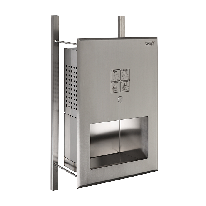 SLUN 70H - Réf. 73701 - lave-mains multiple en acier inoxydable avec électronique piézo, distributeur de savon intégré, sortie d'eau et sèche-mains, siphon, kit de montage, câble flexible avec prise pour prise murale 230 V/50 Hz