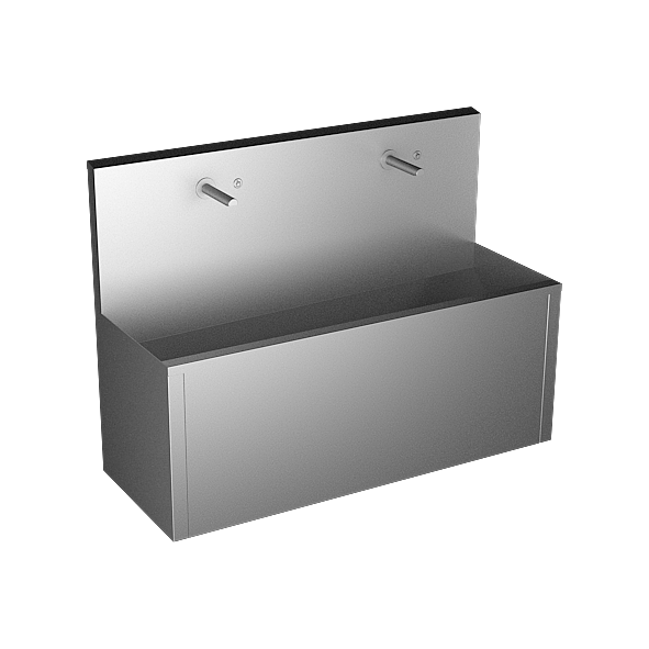 Rinçoir mural en acier inoxydable anti-vandalisme avec 2 électroniques piézo intégrées, longueur 1250 mm, 24 V CC