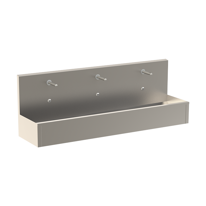 SLUN 81ET - Réf. 93813 - auge de lavage en acier inoxydable avec électronique et becs, électrovanne (qté selon le nombre d'électroniques), flexibles de raccordement, robinet d'angle avec clapet anti-retour (2 pcs.), siphon, kit de montage, vanne thermostatique