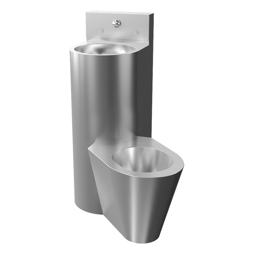 SLWN 08P - Réf. 94082 - unité combinée en acier inoxydable avec WC et lavabo, bouton-poussoir (2 pcs.), bec de lavabo, vis M10 (6 pcs.), kit de raccordement