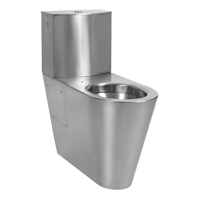 Toilette en acier inoxydable pour personnes handicapées avec réservoir à arrivée d'eau par le bas
