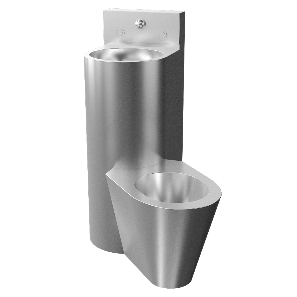 SLWN 18P - Réf. 94182 - unité combinée en acier inoxydable avec WC et lavabo, bouton-poussoir (2 pcs.), bec de lavabo, kit de montage, kit de raccordement