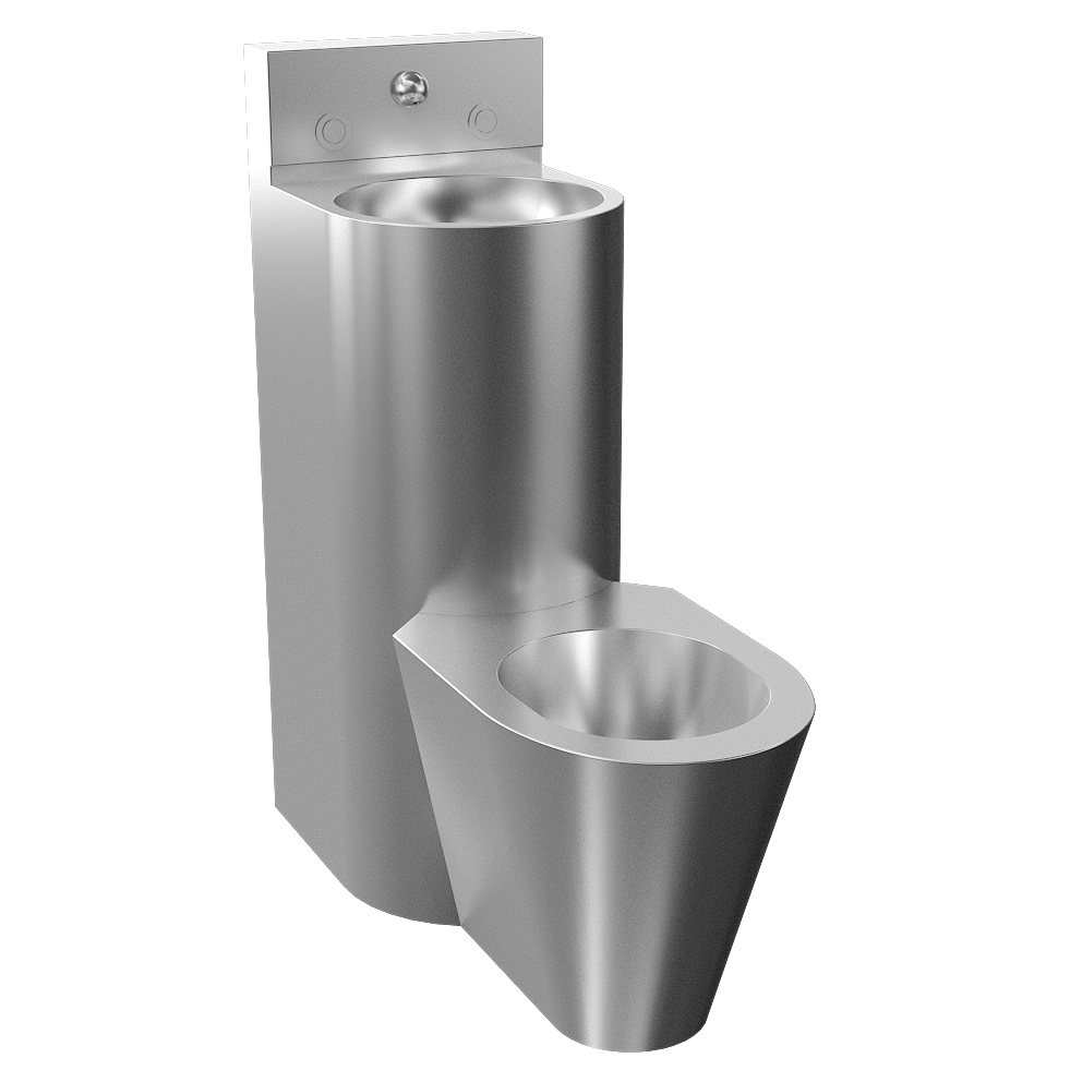 SLWN 38 - Réf. 94382 - unité combinée en acier inoxydable avec WC et lavabo, bouton-poussoir (2 pcs.), bec de lavabo, kit de montage, kit de raccordement