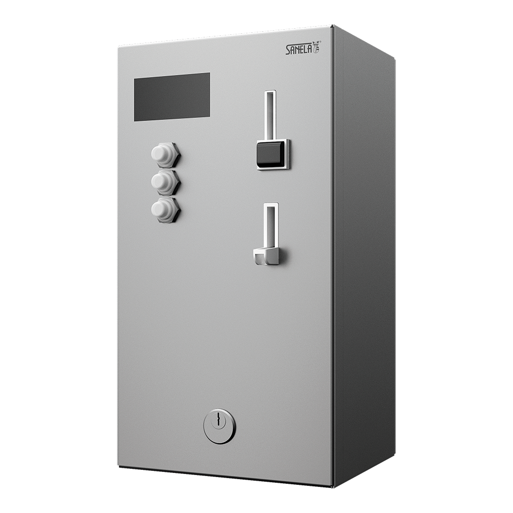 SLZA 02KM - Réf. 89021 - appareil à pièces en acier inoxydable avec électronique, porte-pièces et boîte à pièces, jeu de clés (2 pcs.)