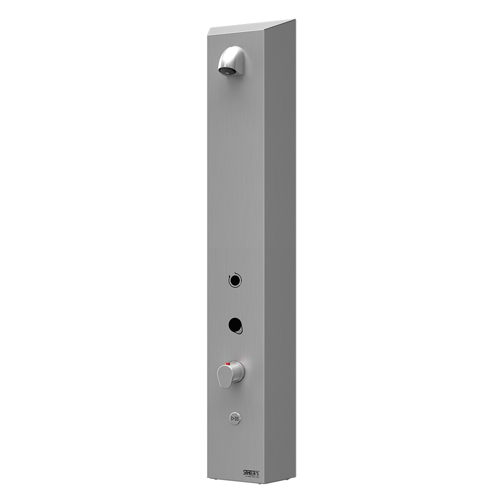 SLZA 32T - N° de fourniture 89320 - panneau de douche en acier inoxydable avec électronique et lecteur de valeur de crédit sur jeton, pomme de douche avec possibilité de régler l’angle du jet d’eau, électrovanne (1 pc.), mitigeur thermostatique, flexibles de raccordement, robinet d’angle avec filtre et clapet anti-retour (2 pcs.)