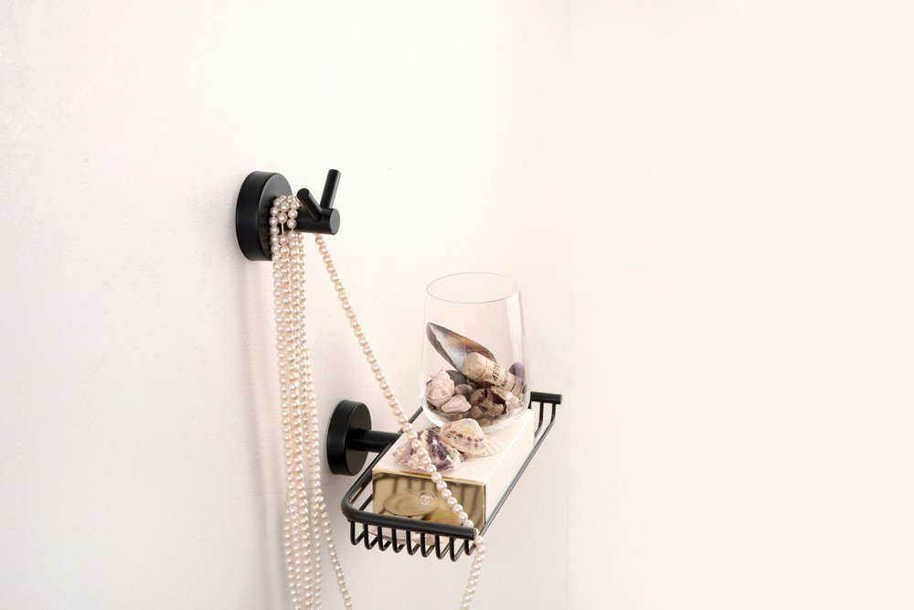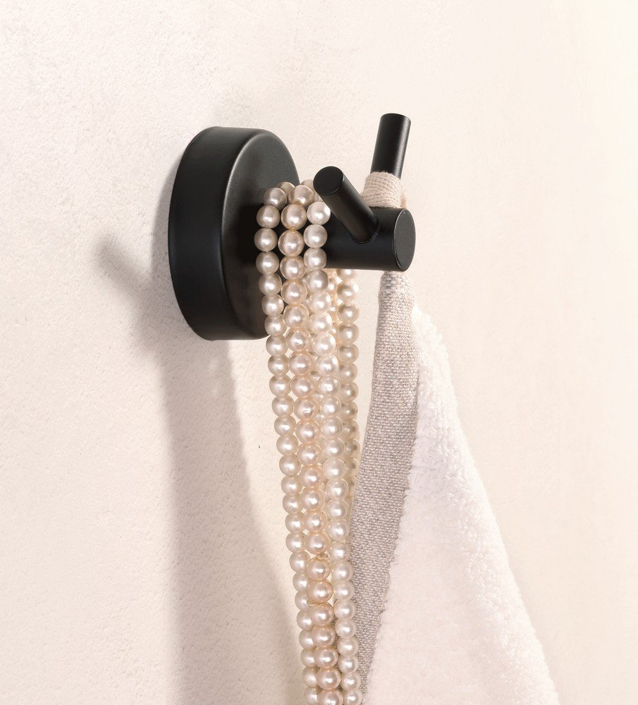 Porte-manteau en acier inoxydable avec deux crochets, finition noir mat