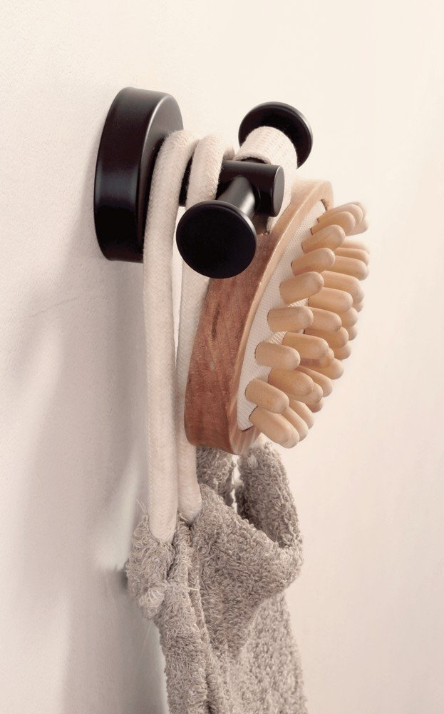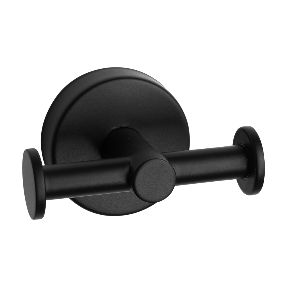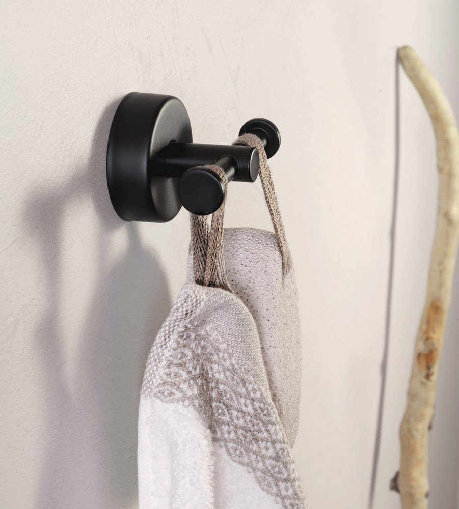 Porte-manteau en acier inoxydable avec deux crochets, finition noir mat