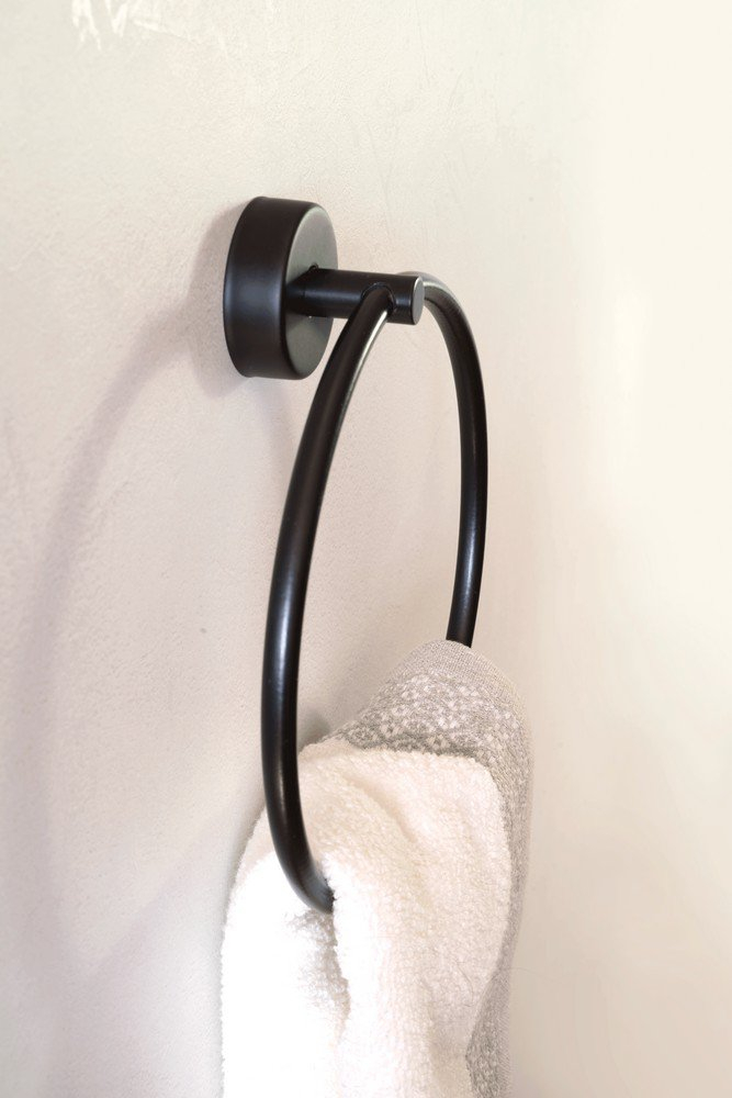 Anneau porte-serviettes en acier inoxydable, finition noire mate