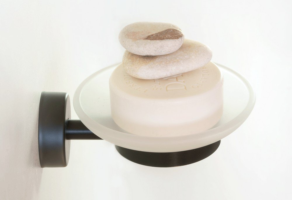 Porte-savon en acier inoxydable / verre, finition noire mate