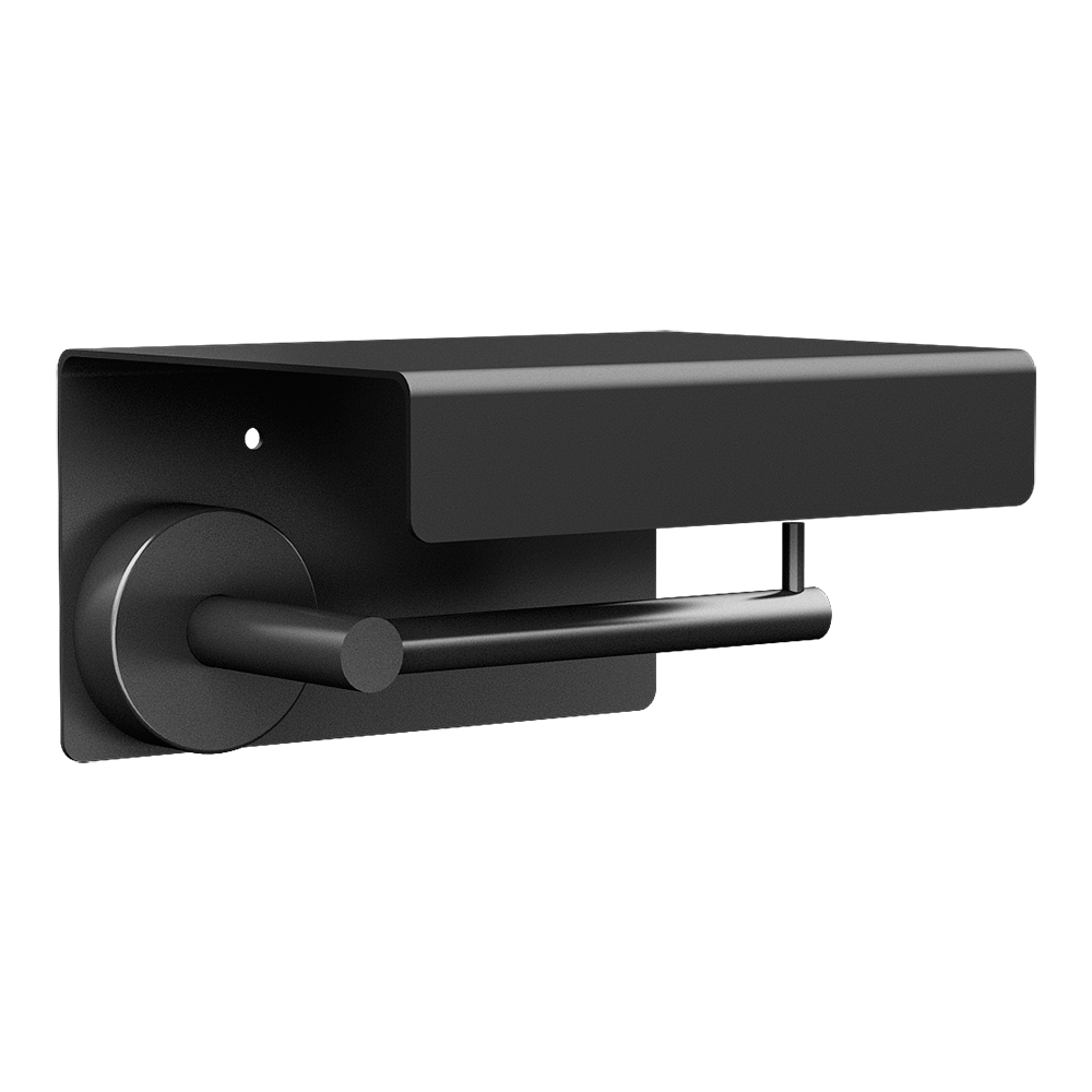 Support en acier inoxydable pour papier toilette avec étagère, finition noire mate