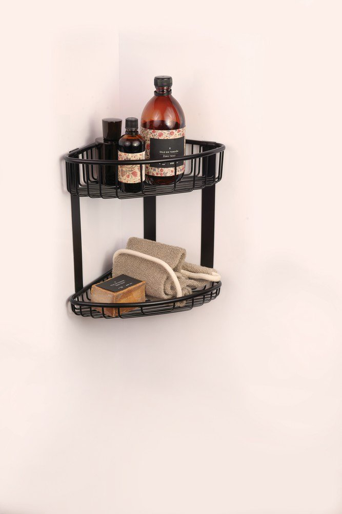 Étagère d’angle double en acier inoxydable, finition noire mate