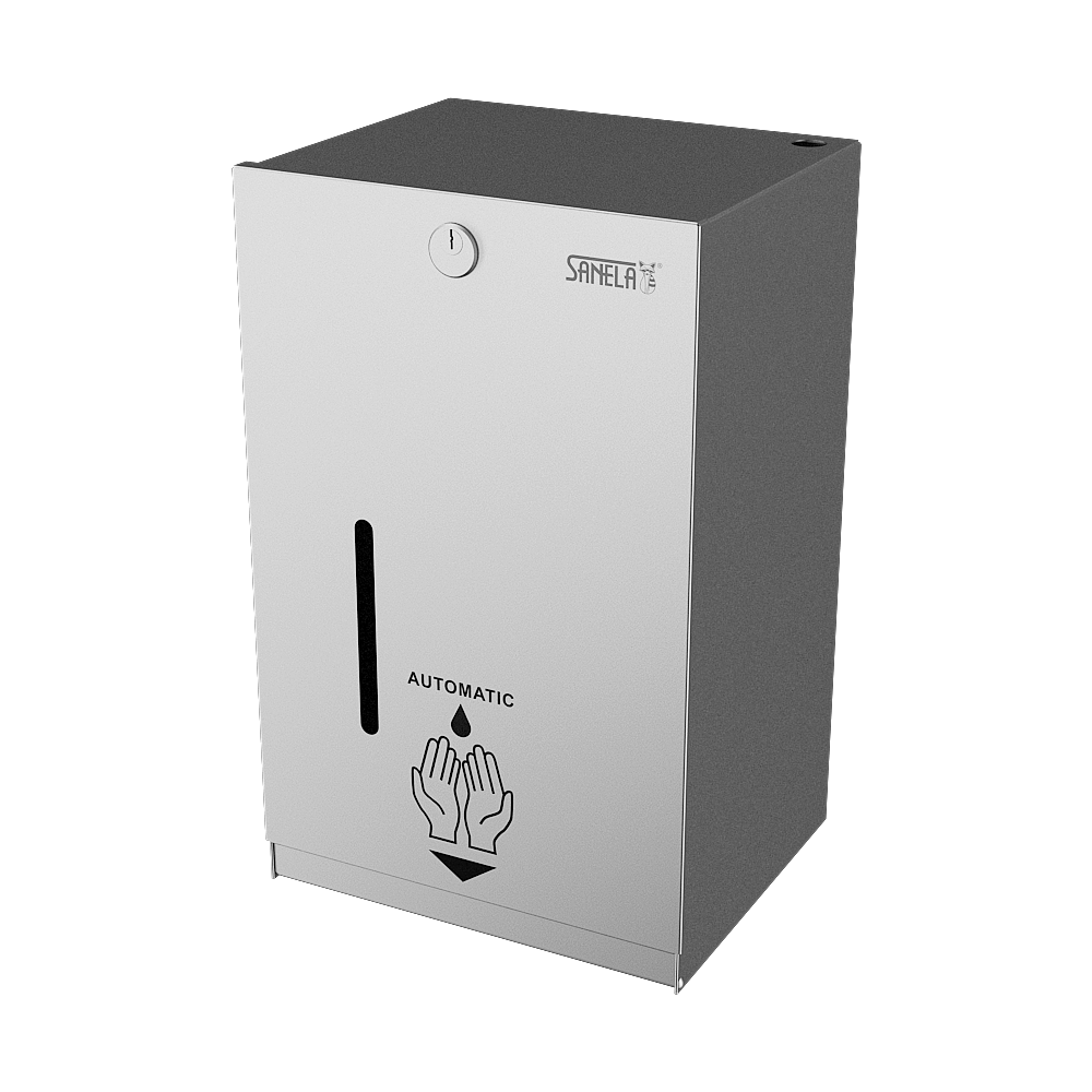 - réagit aux mains dans la zone active en délivrant une dose unique de désinfectant ou de savon (temps de dosage réglable entre 1,3-13 s), standard 1,3 s