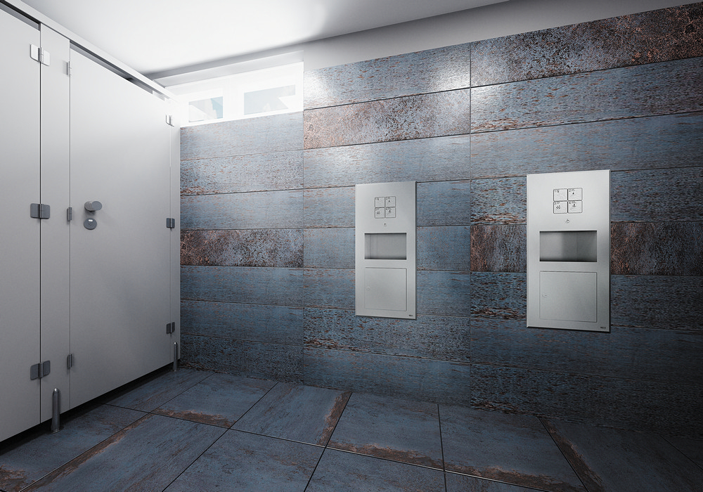 Les accessoires en acier inoxydable tels que les distributeurs de papier‑mains et de papier toilette, les distributeurs de savon ou les lavabos multifonctions sont conçus pour être montés encastrés dans le mur. Cette solution réduit les risques de dommages et contribue à une apparence intérieure épurée et moderne.