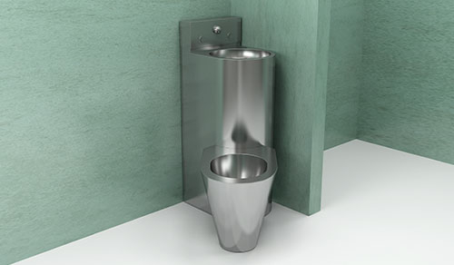 Unité combinée d’angle antivandale, WC sur pied à droite
